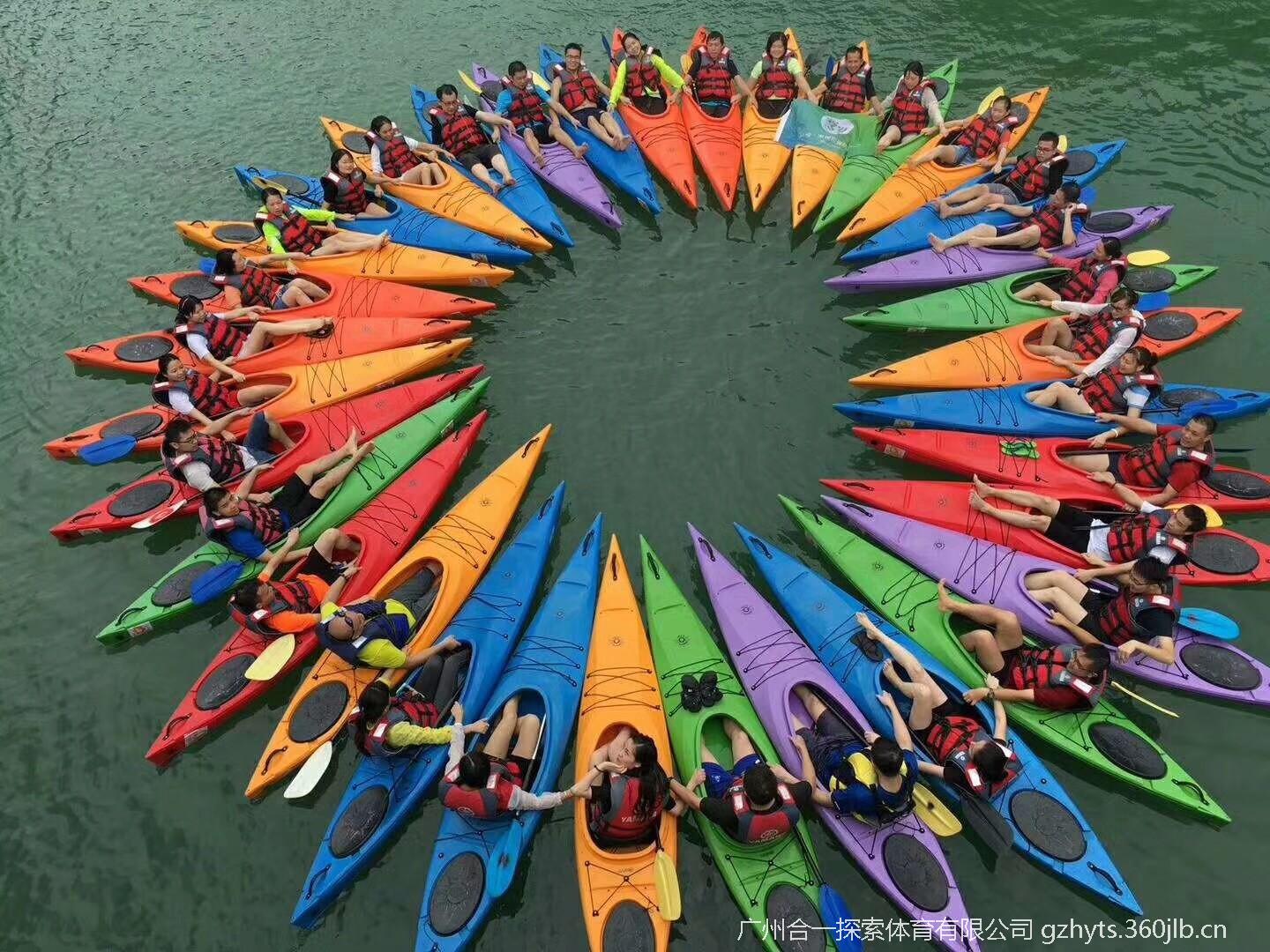 皮划艇游览大江里,组织皮划艇造型,大合照。
