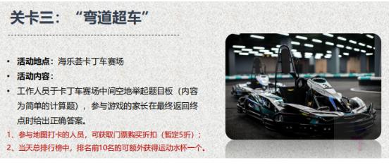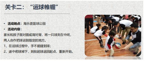2. 拓展竞赛游戏:地点设在海乐荟广场,按照年龄亲子分组组队,竞赛游戏设置以亲子参与为主,各类商场内游戏在商场内获得积分;
