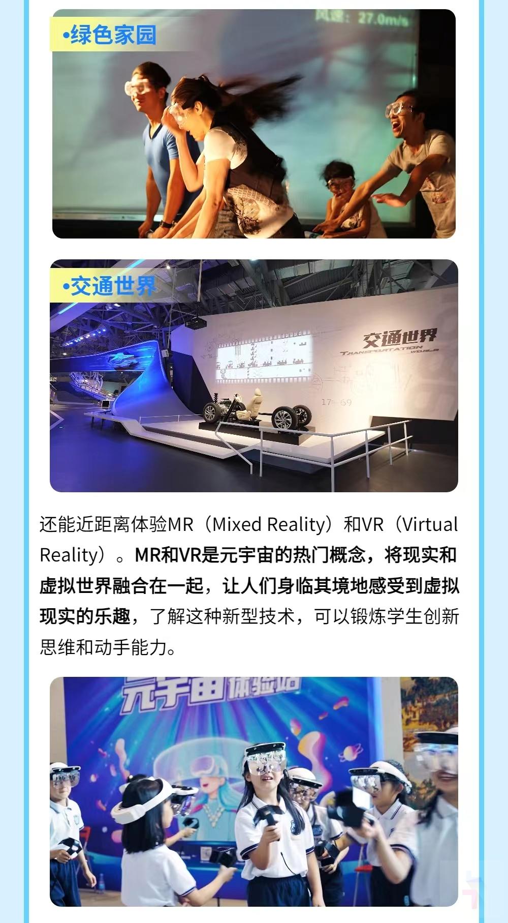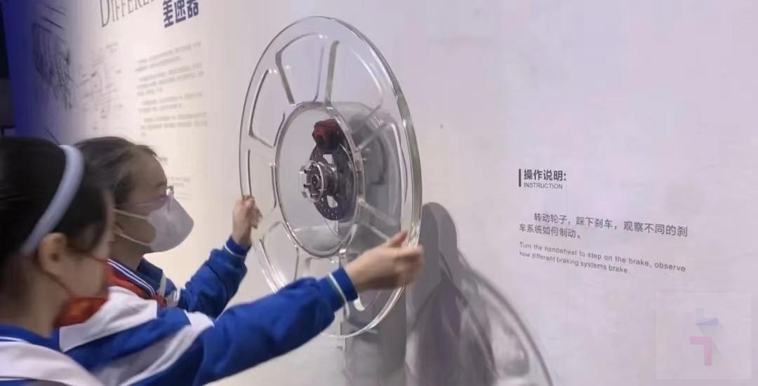 “交通世界,创新空间”科普馆以汽车和交通技术的发展及人类文明进步为展示主题,以人与交通的和谐、可持续发展为设计理念。让同学们在实践中体验,在体验中感受科技文明给人类生活带来的改变。