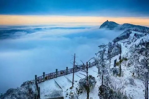 南方雪乡,云的故乡,一山四景,半山雾凇冰挂,山顶雪景云海。