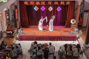 载阳茶馆是潮州首个配备戏台的传统茶馆,集潮州建筑文化、茶文化、戏剧曲艺文化于一体的潮州传统文化体验中心。坐在茶馆喝茶聊天、观赏潮剧、听潮人讲古是一种无比美妙的体验,宛如时光倒流,回到旧时潮州,感受她昔日的繁华。