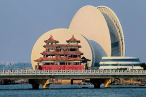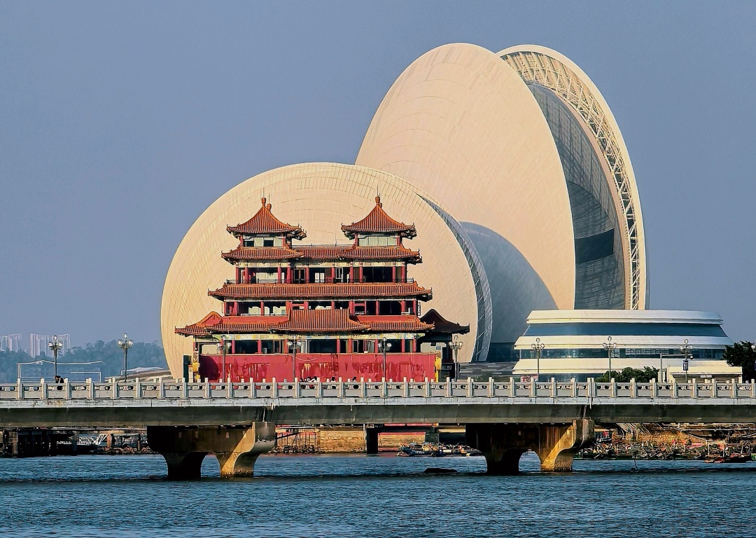 “日月贝”造型的珠海大剧院