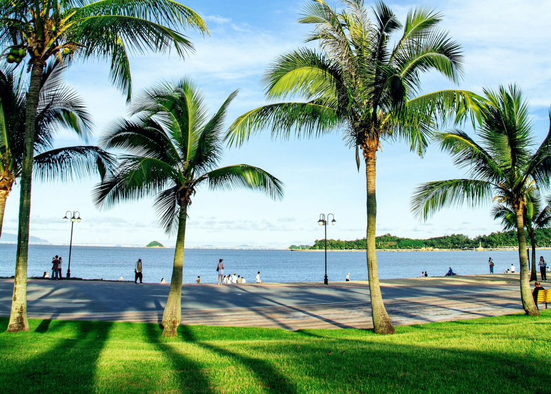 岛上精细的绿化妆点着滨海绿道非常唯美上镜